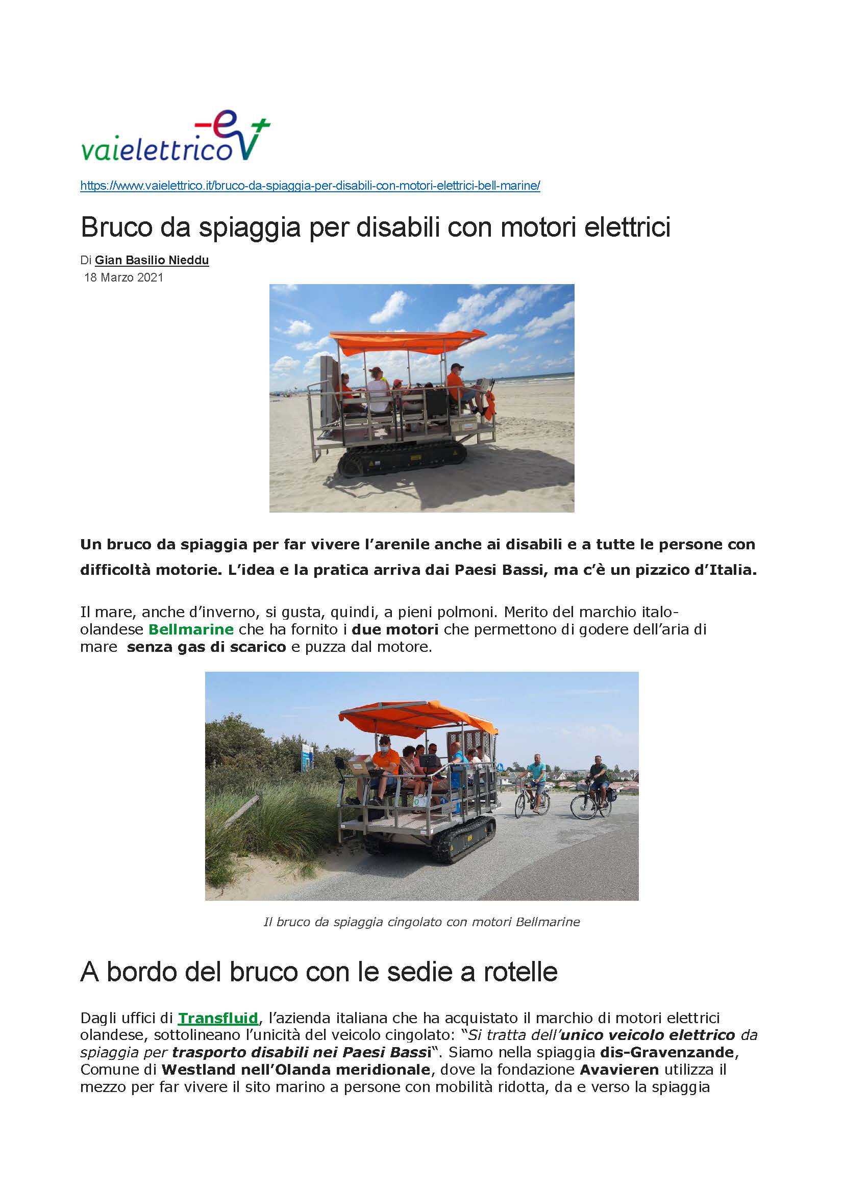 AN ELECTIRC BEACH CATERPILLAR FOR DISABLED PEOPLE Press March 22, 2021 00:00 Peakweb PROPULSION OF THE BEACH CATERPILLAR IS ENTRUSTED TO BELLMARINE ELECTRIC MOTORS https://www.vaielettrico.it/bruco-da-spiaggia-per-disabili-con-motori-elettrici-bell-marine/