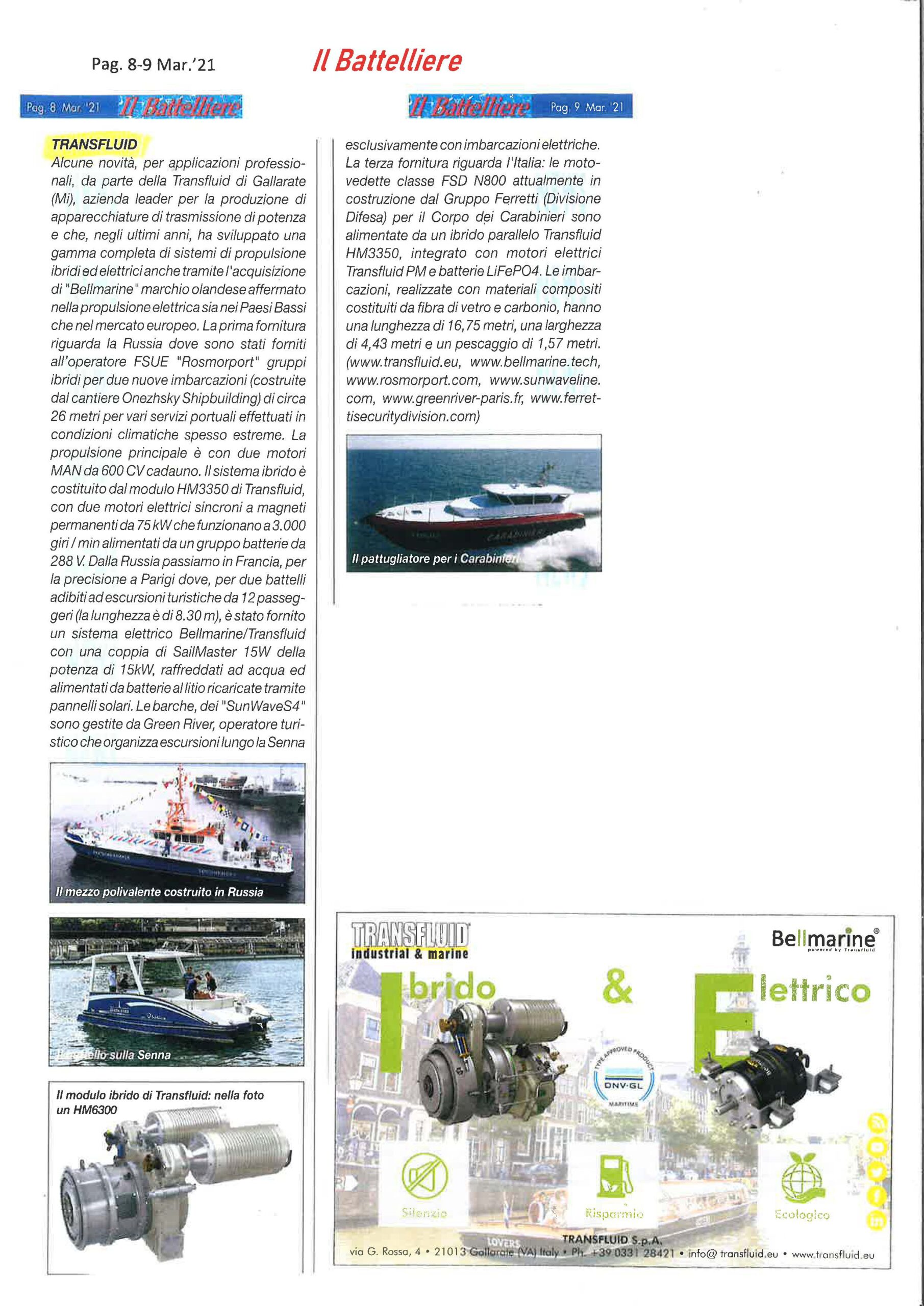 HYBRID AND ELECTRIC SYSTEM FOR BOATS Press May 27, 2021 00:00 Peakweb ECO-SUSTAINABLE TRANSMISSION FOR ALL TYPES OF BOATS Il Battelliere 03 2021