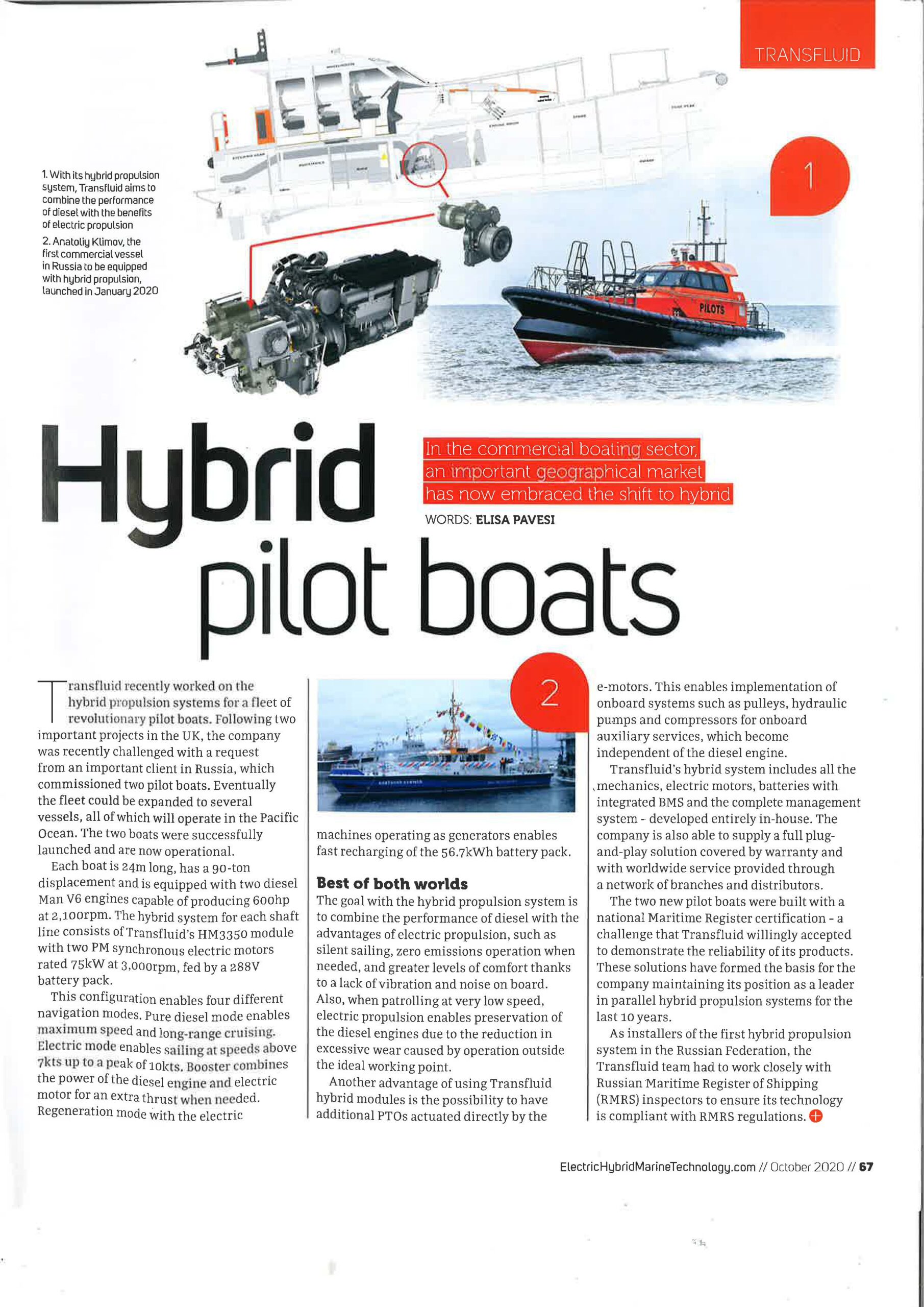 New pilot boats use revolutionary hybrid propulsion system Press January 22, 2021 00:00 Peakweb Hybrid boats: the performance of diesel with the efficiency of electric Electric & Hybrid Marine Technology October 2020