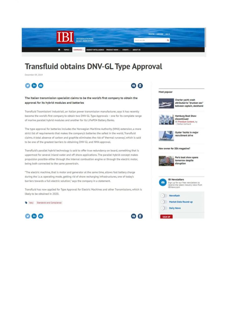 Transfluid marine hybrid system and batteries receive DNV-GL type approval