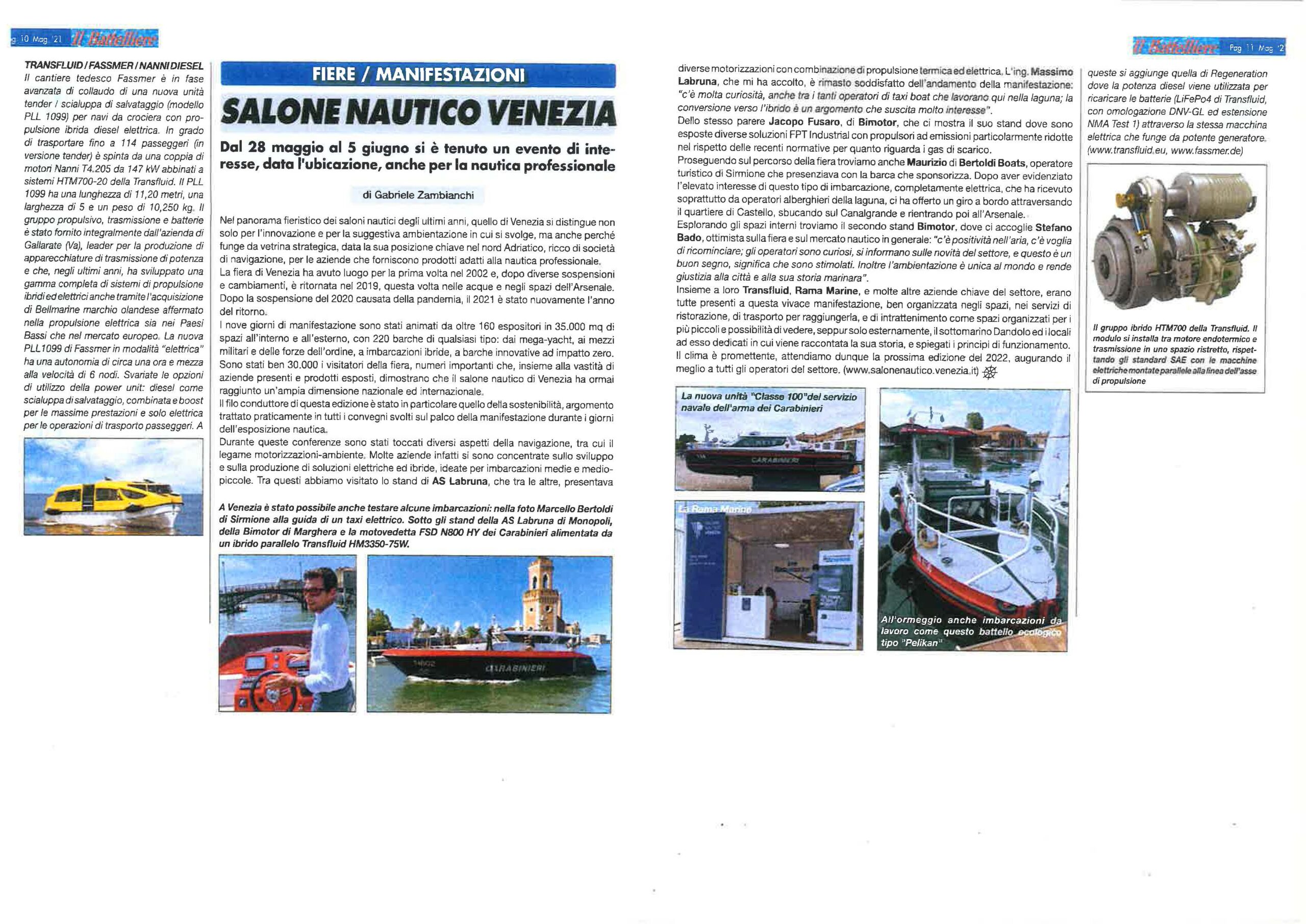 THE HYBRID TRANSMISSIONS FOR VARIOUS MARINE APPLICATIONS Press September 7, 2021 00:00 Peakweb THE PARALLEL HYBRID FOR ALL KINDS OF BOATS Il Battelliere May 2021